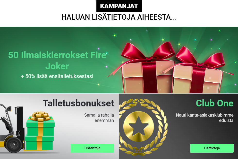 - Minimi talletus vaatimus on 20€, jotta saat bonuksen käyttöösi